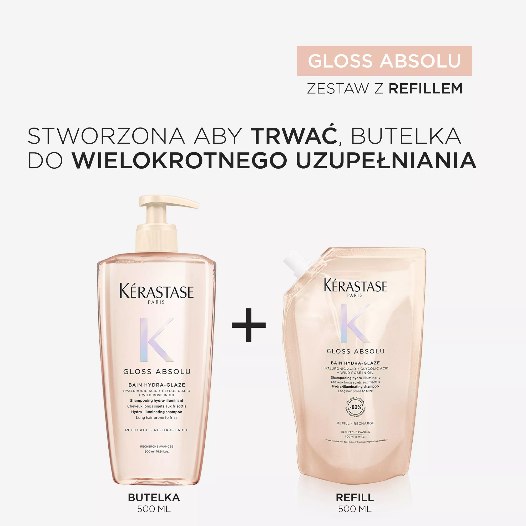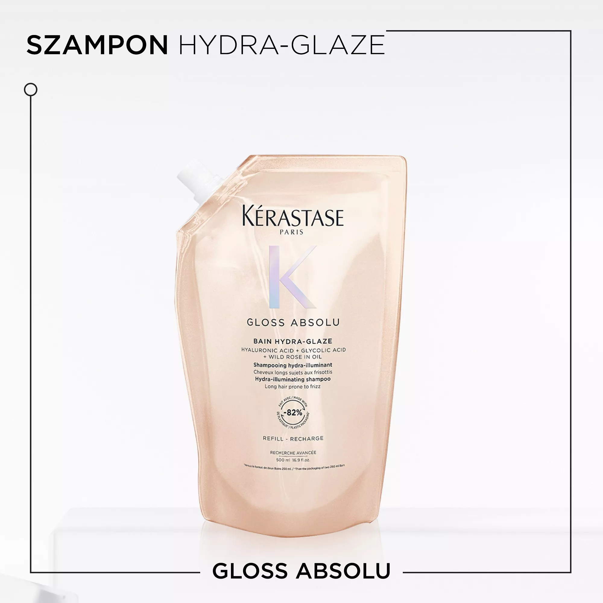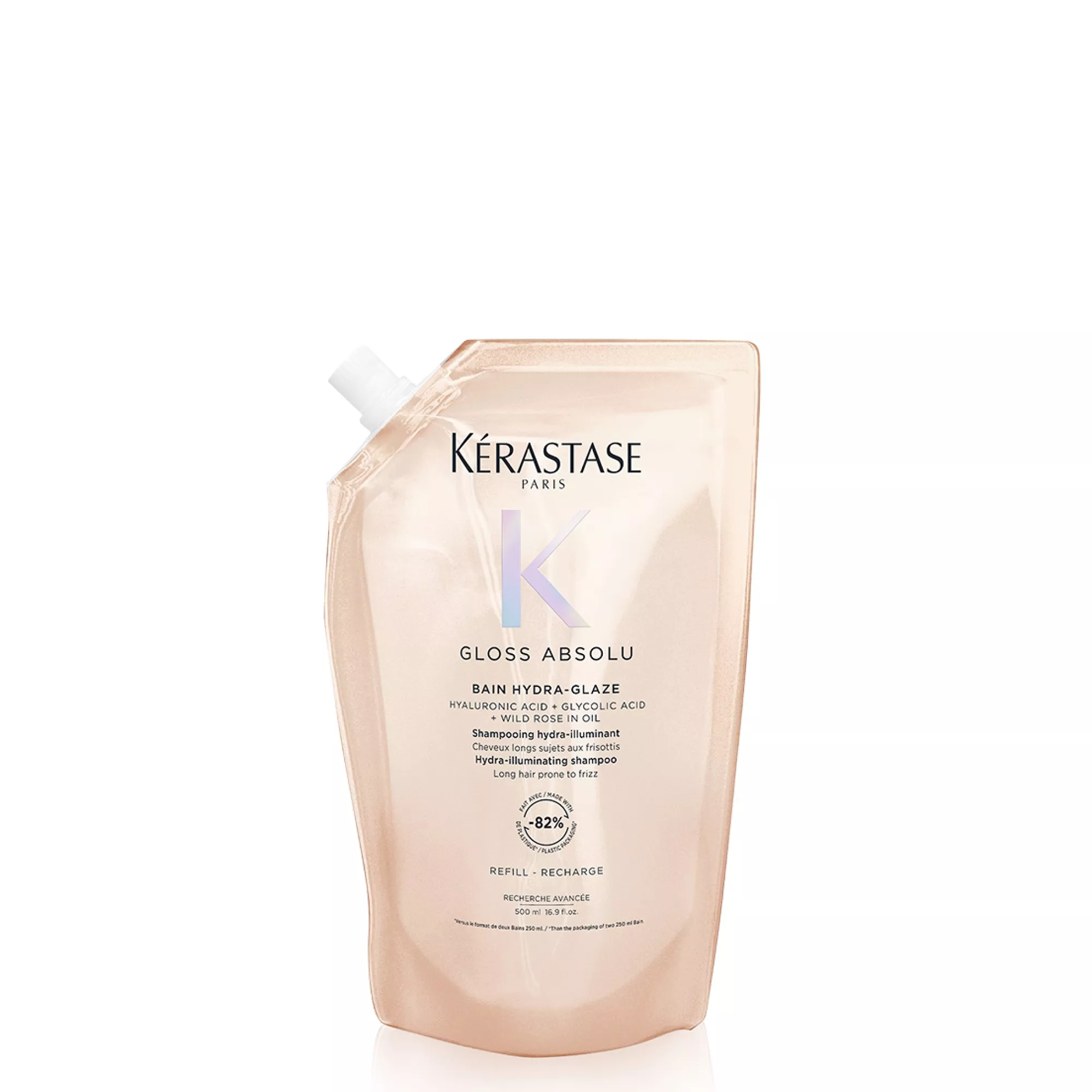 Kerastase Gloss Absolu Hydra Glaze Refill, szampon nawilżająco-nabłyszczający do włosów puszących się, 500ml