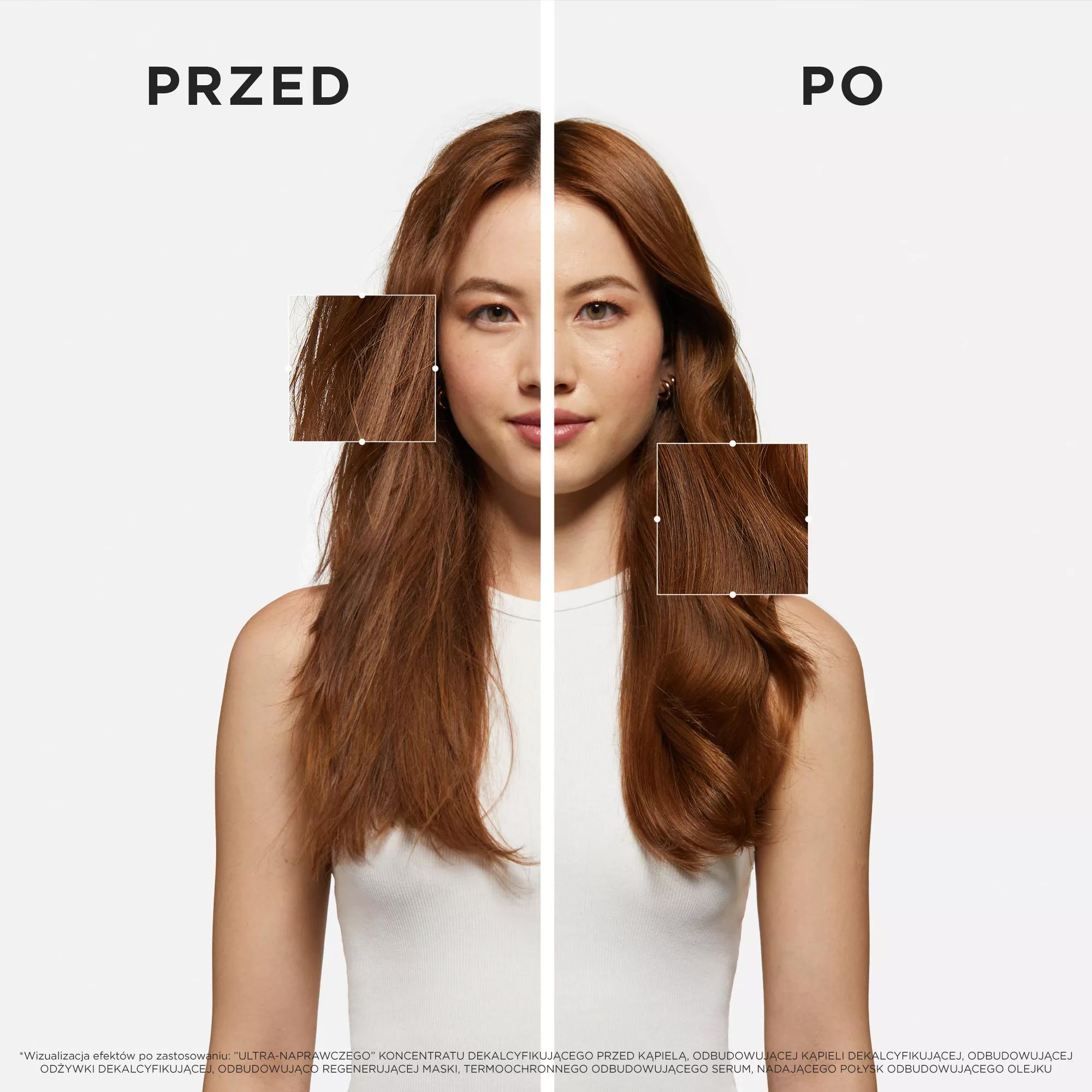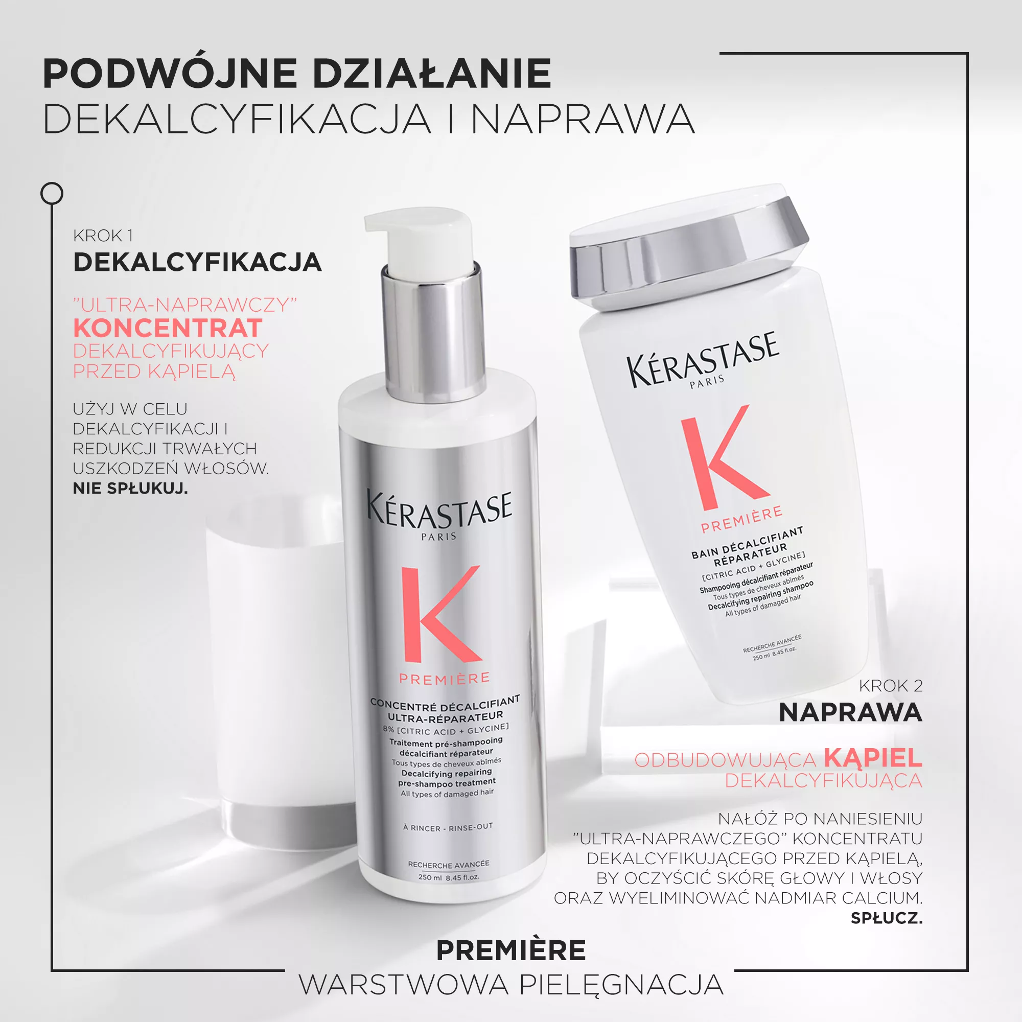 • ""Ultra-naprawczy"" koncentrat dekalcyfikujący przed Kąpielą, 250ml - Pierwszy pre-szampon, który usuwa osadzający się na włosach wapń z twardej wody i regeneruje każdego rodzaju włosy zniszczone.