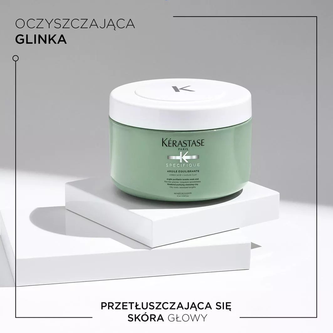 Oczyszczająca glinka Kerastase Specifique przeznaczona jest do kompleksowej pielęgnacji włosów przetłuszczających się u nasady i uwrażliwionych na długościach. Kosmetyk powinien być stosowany raz w tygodniu dla dokładnego oczyszczenia pasm. Glinka intensywnie oczyszcza i jednocześnie delikatnie myje skórę włosy, zapobiega nadprodukcji sebum oraz skutecznie usuwa zanieczyszczenia. Włosy zyskują na objętości dzięki uniesieniu ich u nasady. Skóra głowy jest odświeżona.