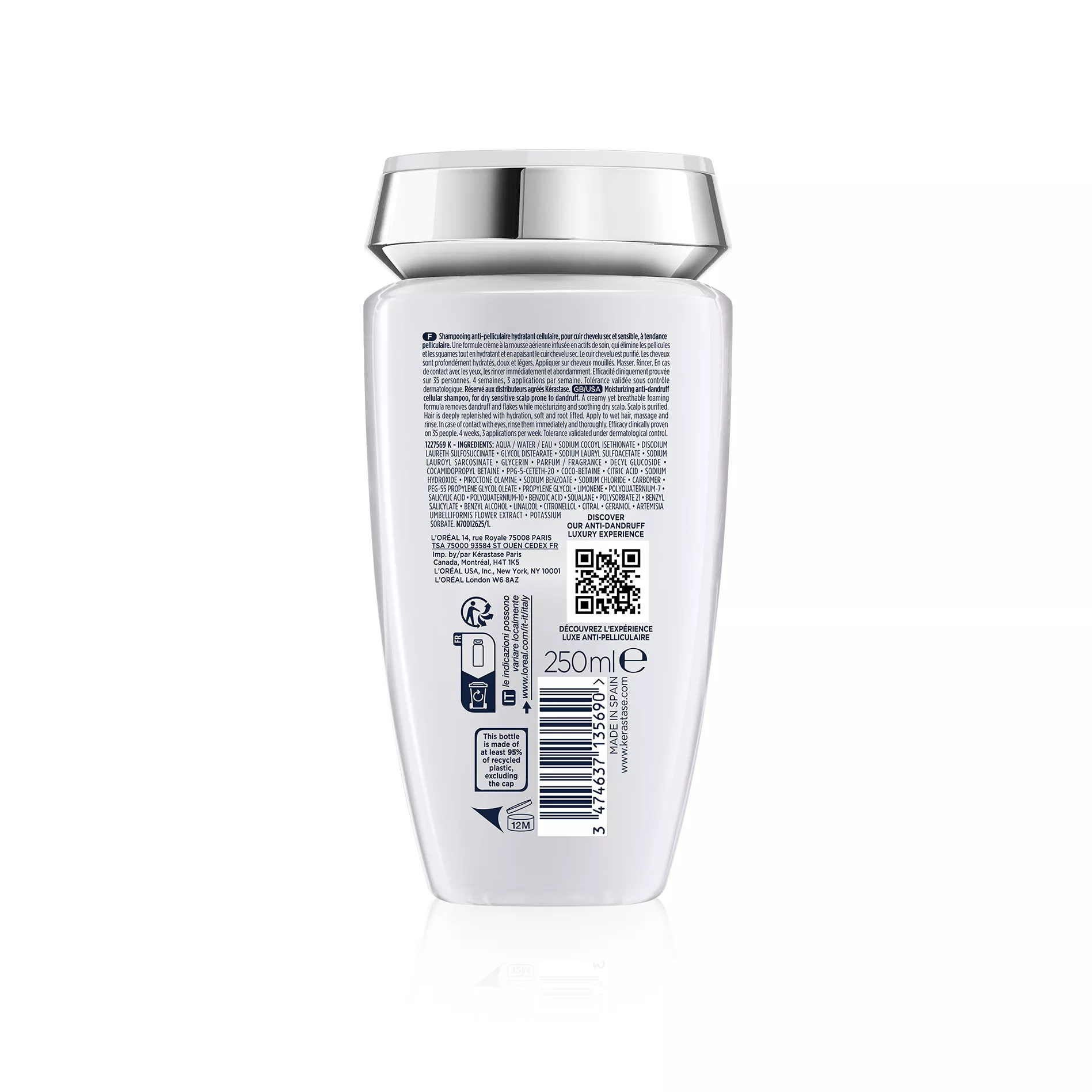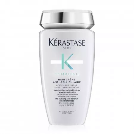 Nawilżająca kąpiel przeciwłupieżowa do włosów Kerastase Symbiose Anti-Pelliculaire ma przyjemną, kremową konsystencję. Szampon przywraca komfort wrażliwej i suchej skórze głowy ze skłonnością do łupieżu i działa kojąco. Ponadto szybko i skutecznie usuwa widoczne oznaki łupieżu oraz pozostawia kosmyki niezwykle delikatne w dotyku. Włosy stają się miękkie, błyszczące, wyglądają zdrowo i są odświeżone.