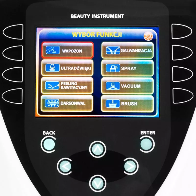 - Menu w języku polskim, które umożliwia szybkie wybieranie opcji zabiegowych.