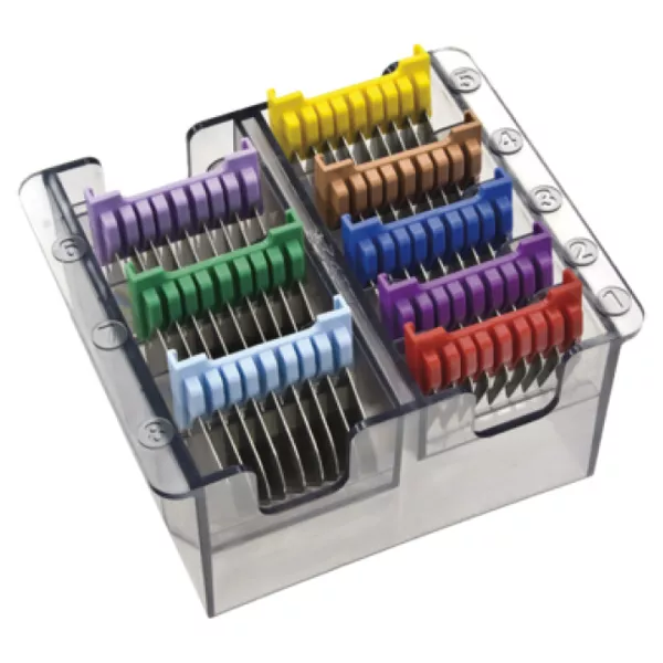 Odkryj nowy wymiar precyzji strzyżenia dzięki kompletowi metalowych nasadek dystansowych do maszynek Wahl, Ermila, Moser. Zestaw zawiera 8 różnokolorowych nasadek, które nie tylko ułatwiają identyfikację, ale także zapewniają doskonałą trwałość dzięki wykonaniu ze stali nierdzewnej. Idealny wybór dla profesjonalistów oraz wymagających użytkowników domowych.