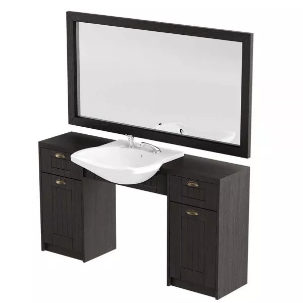 Konsoleta fryzjerska Panda Barber Retro posiada miejsce na jedno stanowisko. Mebel posiada również praktyczny kosz na ręczniki.