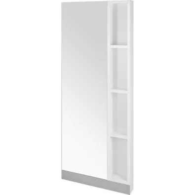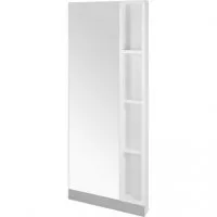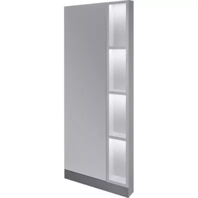 Konsoleta fryzjerska z regałem na kosmetyki. Idealna do niedużych salonów fryzjerskich, ponieważ pozwala zrezygnować z dodatkowego ekspozytora na kosmetyki. Podświetlenie LED półek dodaje konsolecie lekkości.