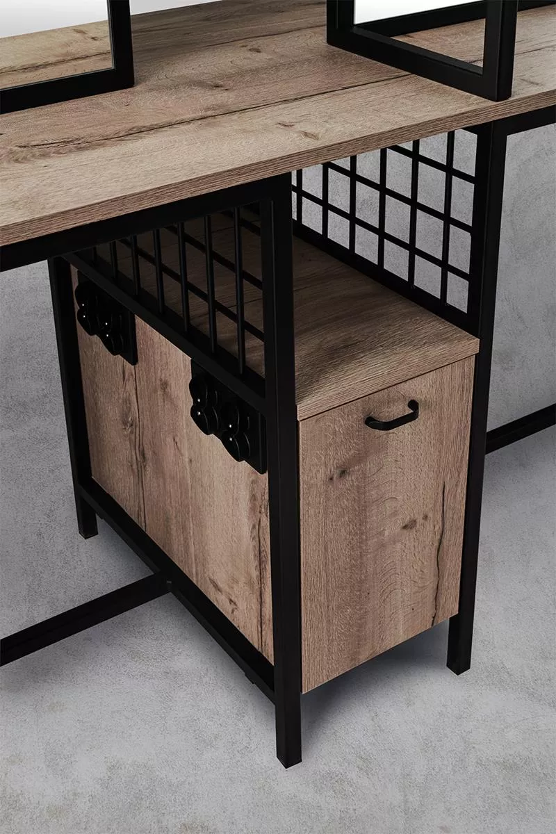 Ponadczasowy Industrialny styl. Wolnostojąca konsoleta 4-osobowa, Metalowa ażurowa konstrukcja w kolorze czarnym.
