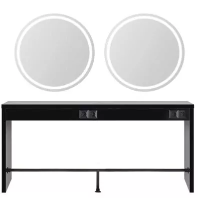 Konsoleta wykonana z płyty meblowej. Wyposażona w cztery gniazdka elektryczne oraz chromowany lub czarny podnóżek.