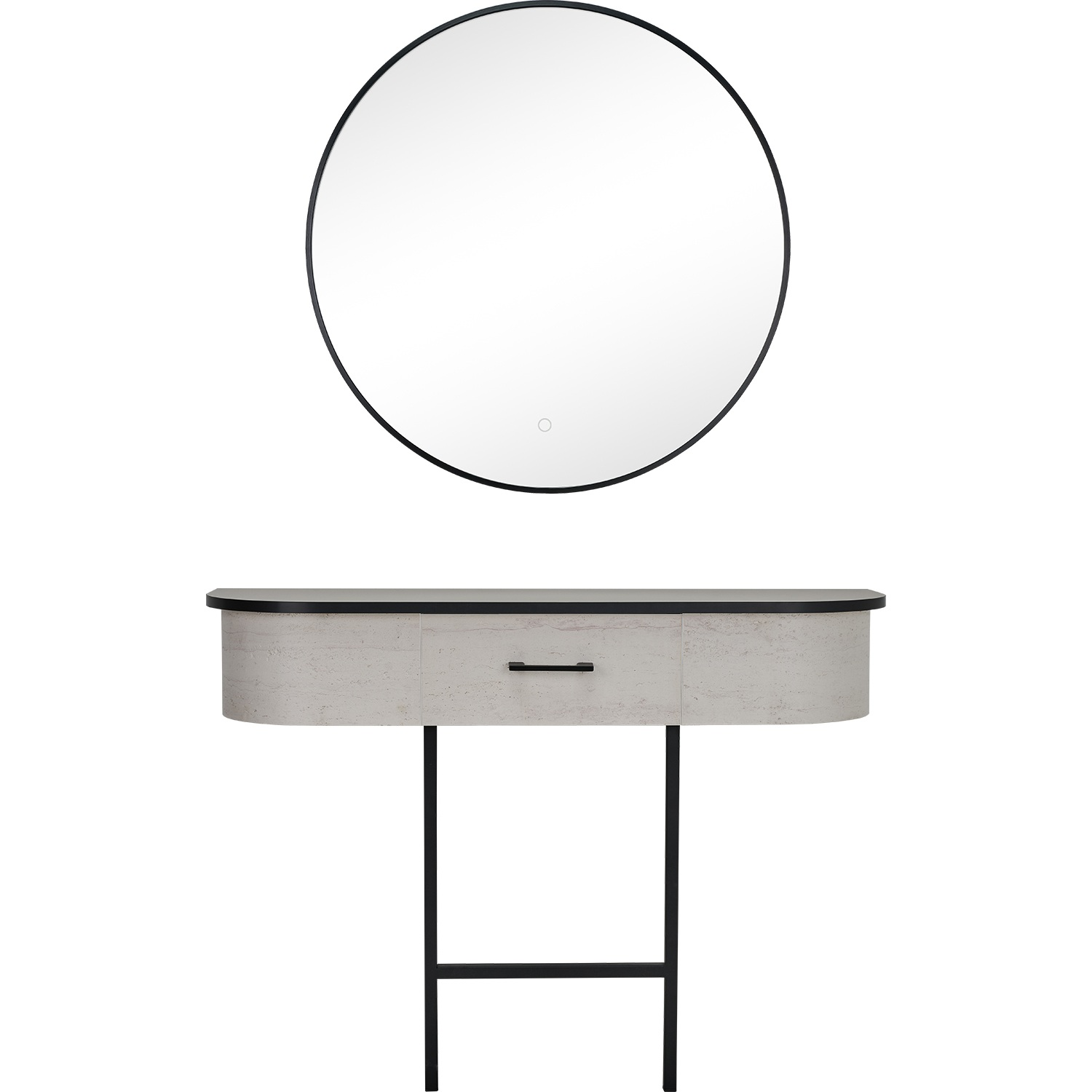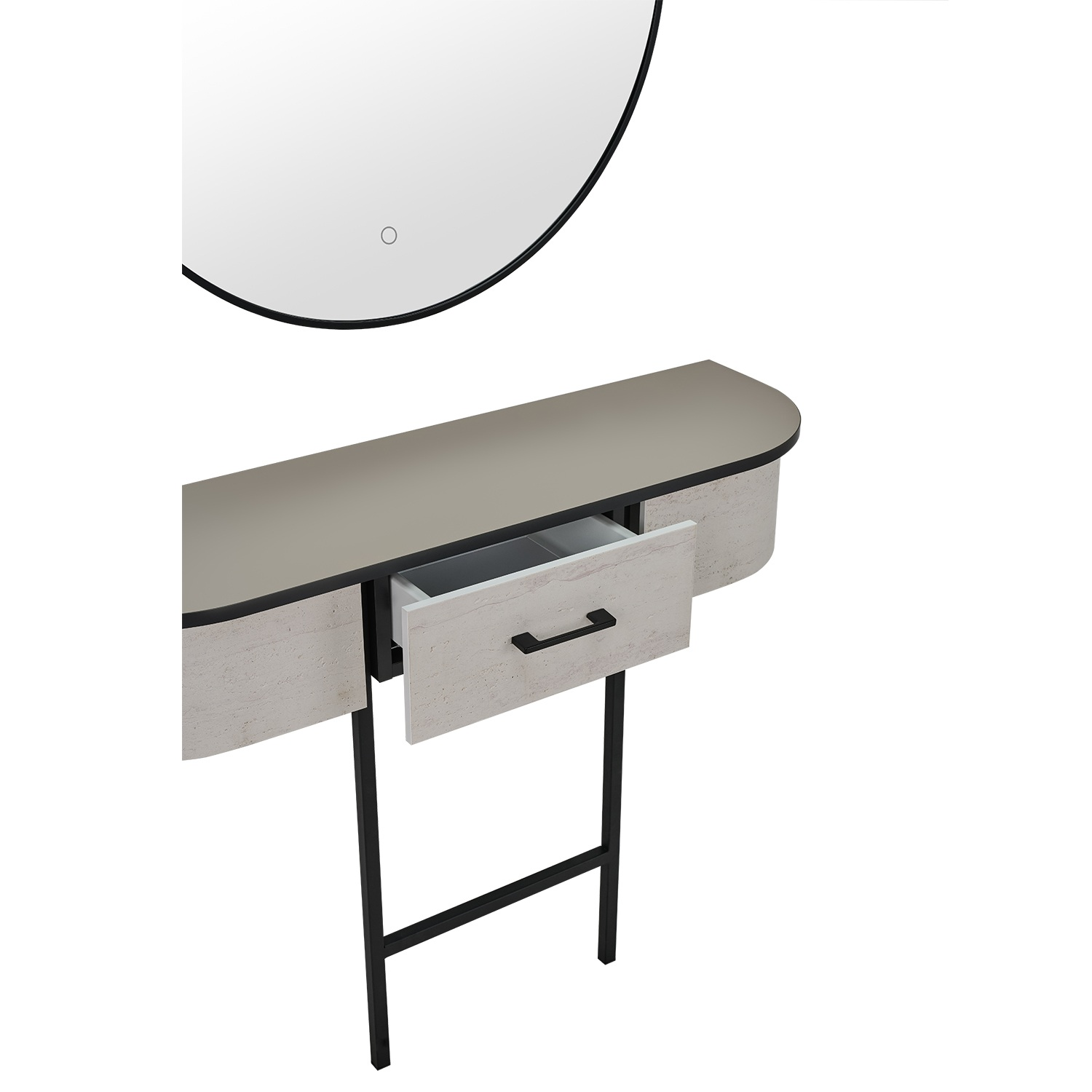 Konsoleta VIDA to kwintesencja elegancji i trendów wnętrzarskich. Jej charakterystyczny owalny front, wykonany z jasnego tworzywa o strukturze i wyglądzie trawertynu, przyciąga wzrok i podkreśla prestiżowy charakter wnętrza.