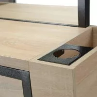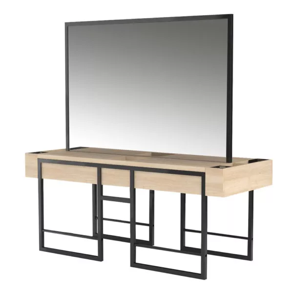Konsoleta fryzjerska Panda Crudo odznacza się surowym designem, który doskonale wpasuje się we wnętrze w stylu loftu. Minimalizm w detalach i wyraźne cechy konstrukcyjne rzucają się już na pierwszy rzut oka. Konsoleta została wykonana z metalu polakierowanego na kolor czarny oraz płyty meblowej z laminatem imitującym drewno. Elegancki design to kolejna cecha tego mebla. Korpus wygląda masywnie, ale subtelne linie wykończenie dodają meblu subtelności. Konsoleta jest przy tym bardzo funkcjonalna.