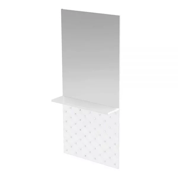 Konsoleta dzielona z praktyczną półką z płyty akrylowej. Góra w formie lustra, spód tapicerowany i zdobiony dużymi kryształami Swarovski.