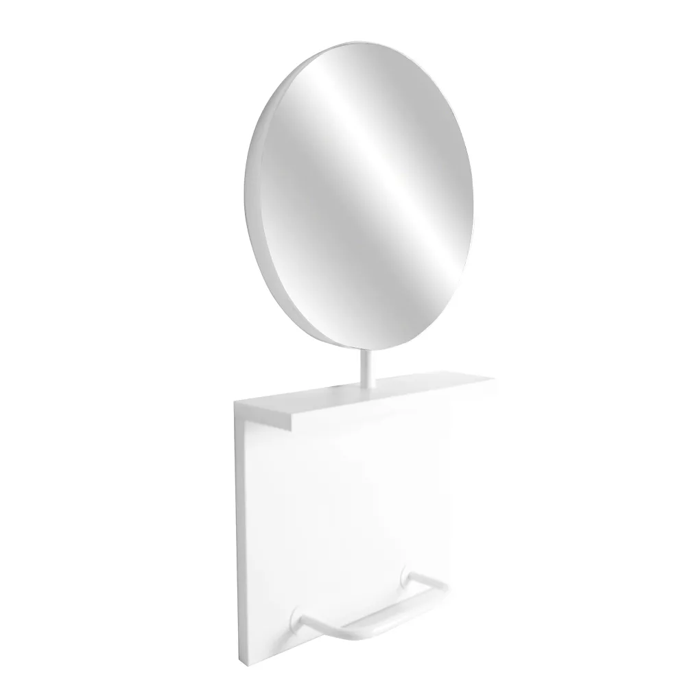 Naścienna szafka do stylizacji z okrągłym lustrem.