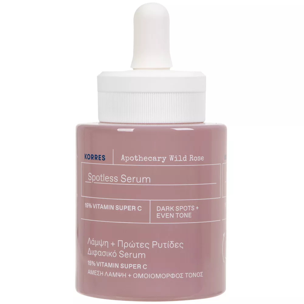Odkryj moc natury z Korres Apothecary Wild Rose – wyjątkowym dwufazowym serum do twarzy, które łączy w sobie potęgę witaminy C i olejku z dzikiej róży. Ten niezwykły produkt został stworzony, aby pomóc Ci w walce z przebarwieniami, wyrównać koloryt skóry oraz zredukować widoczność pierwszych zmarszczek. Ciesz się zdrowym blaskiem i gładką cerą każdego dnia!