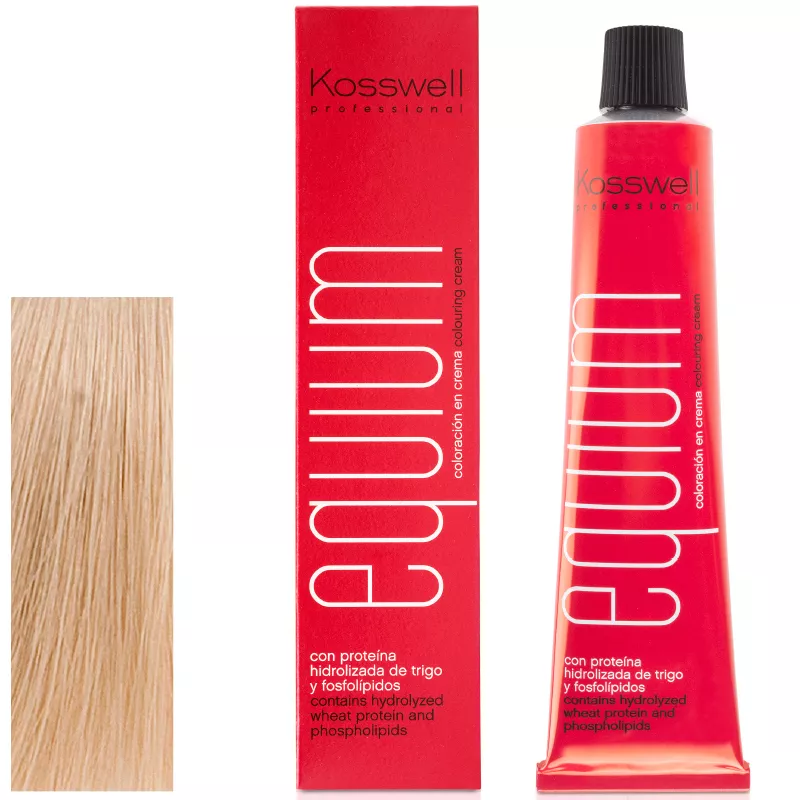 Aby uzyskać najlepsze rezultaty, wymieszaj 30 ml farby Kosswell Equium 903 z 60 ml kremu utleniającego Kosswell Oxiwell (dostępne w stężeniach 10, 20, 30 lub 40 vol.) w niemetalowym naczyniu. Nałóż mieszankę na suche, nieumyte włosy i pozostaw na 35-45 minut. Po upływie tego czasu emulguj farbę i dokładnie spłucz letnią wodą.