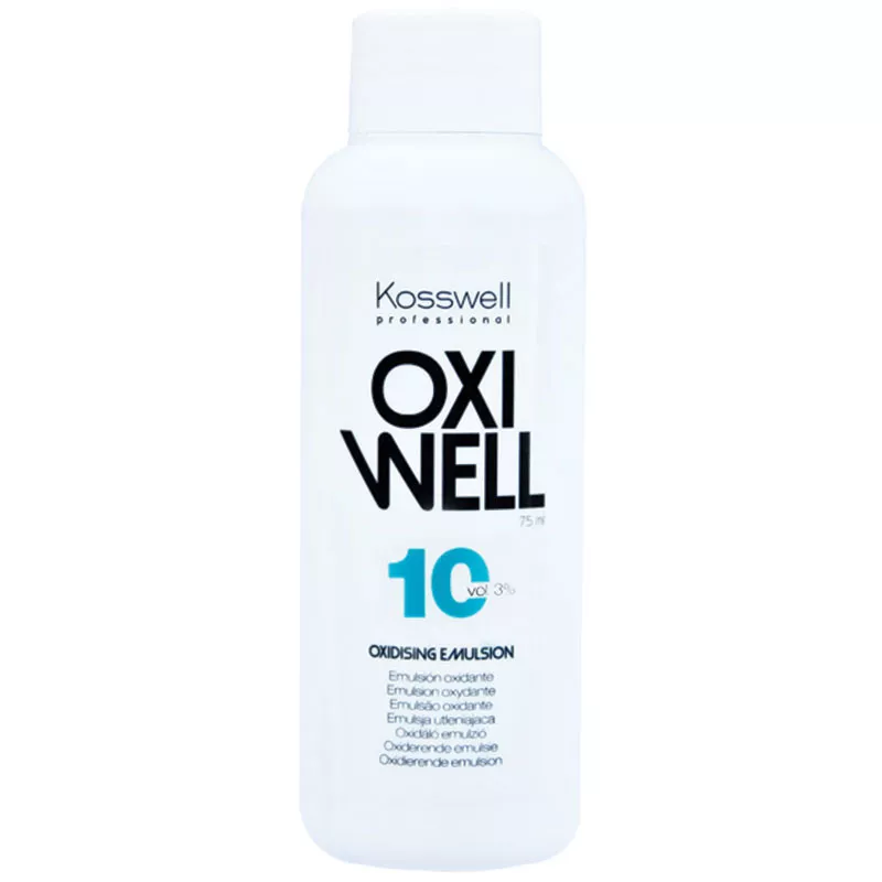 Zmieszaj odpowiednią ilość Kosswell Oxiwell 3% z wybraną farbą lub rozjaśniaczem zgodnie z instrukcjami producenta. Nałóż równomiernie na włosy i pozostaw na zalecany czas, a następnie dokładnie spłucz.