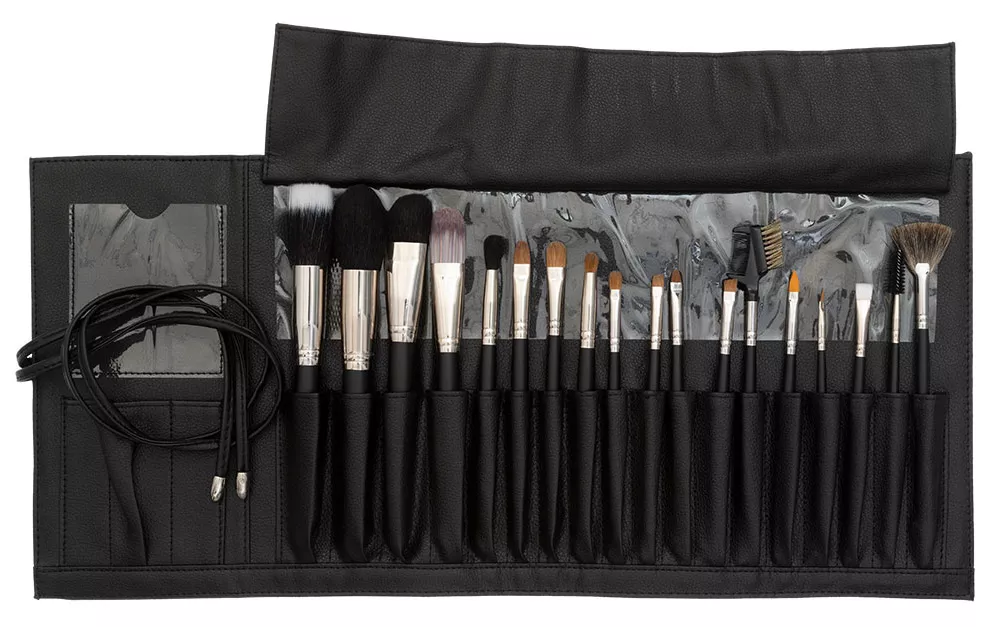 - 18 profesjonalnych pędzli do różnych zastosowań makijażowych.