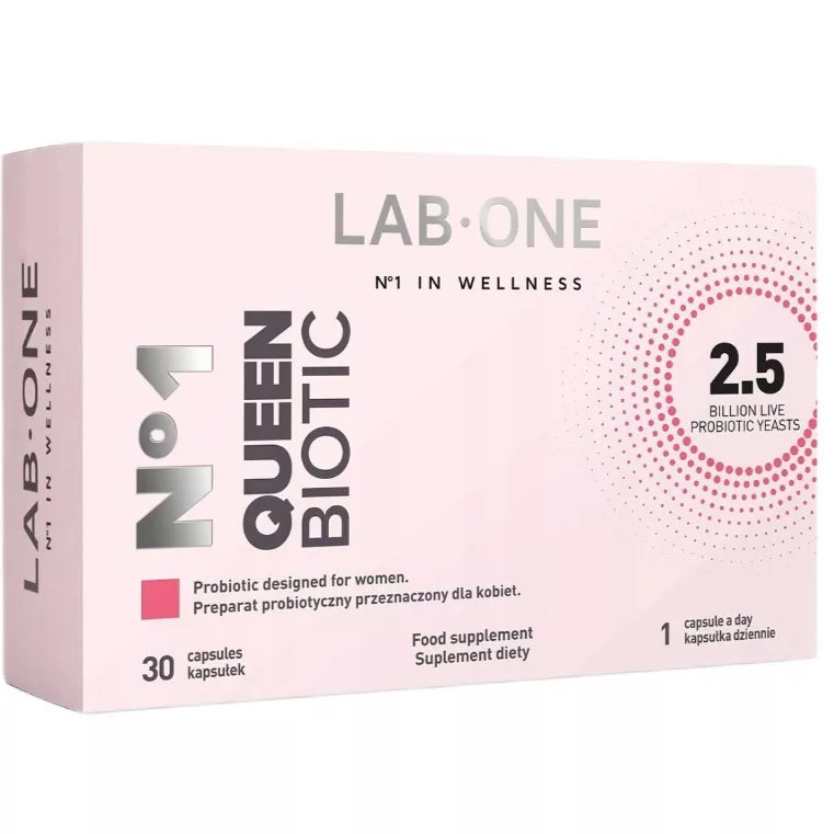 Odkryj moc specjalistycznego suplementu diety LAB ONE N°1 QueenBiotic, który został stworzony z myślą o unikalnych potrzebach zdrowia intymnego kobiet. Dzięki precyzyjnie dobranej formule, każda kapsułka dostarcza 2,5 miliarda wyselekcjonowanych drożdży Saccharomyces cerevisiae CNCM I-3856, wspierając równowagę mikroflory pochwy i pomagając w zapobieganiu infekcjom intymnym.