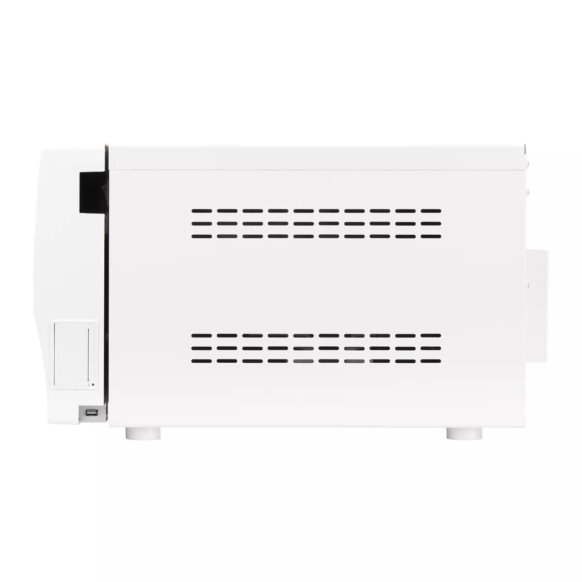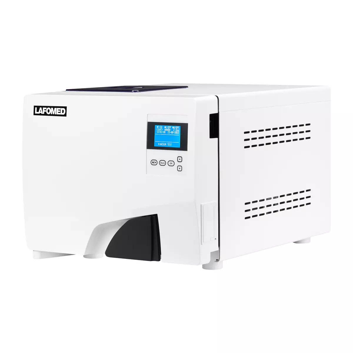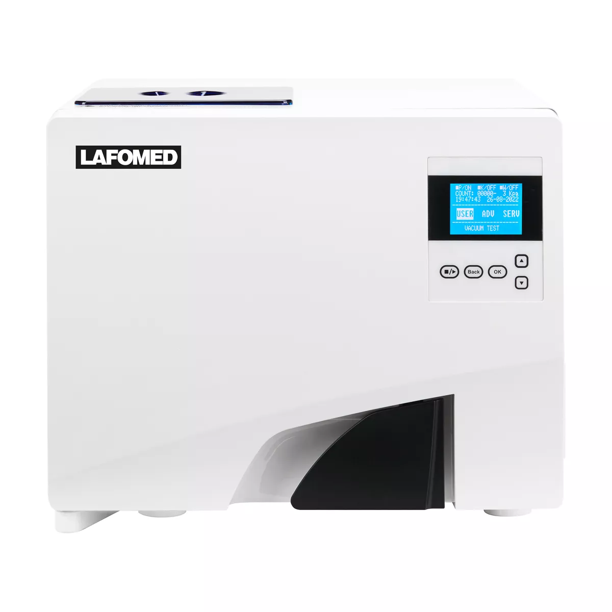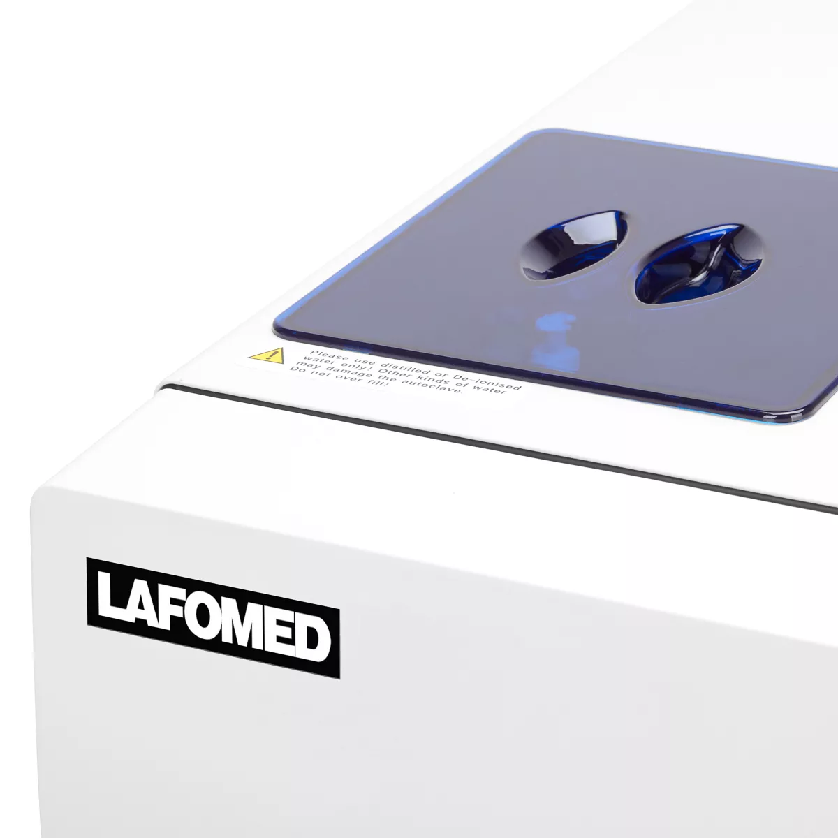 Jest to kompaktowe urządzenie łączące autoklaw z wbudowaną drukarką termiczną. Posiada wyświetlacz LCD oraz port USB, który pozwala na podłączenie nośnika danych, aby zapisać wyniki przeprowadzonego cyklu. Posiada 10 całkowicie automatycznych programów; 7 programów sterylizacji, 2 programy testowe i program czyszczenia autoklawu. Dodatkowo posiada również funkcję programu użytkownika, która pozwala na całkowitą swobodę w wyborze parametrów. Menu jest intuicyjne, a przyjazny interfejs jest w języku polskim. Przydatna okaże się również funkcja nagrzewania wstępnego i utrzymywania ciepła. Autoklaw Lafomed Premium Line odznacza się dostępnością szybkich programów sterylizacji, z możliwością sterowania czasem suszenia. Najkrótszy program sterylizacji razem z suszeniem trwa zaledwie 7 minut. Urządzenie posiada wbudowany zbiornik na czystą (destylowaną) wodę, która służy do sterylizacji, a także zbiornik na zużytą wodę, z możliwością odpływu z przodu lub z tyłu urządzenia. System autodiagnozy skutecznie uchroni przez uszkodzeniem i pozwoli zachować trwałość urządzenia. Dodatkowe bezpieczeństwo zapewni system podwójnej blokady drzwi.