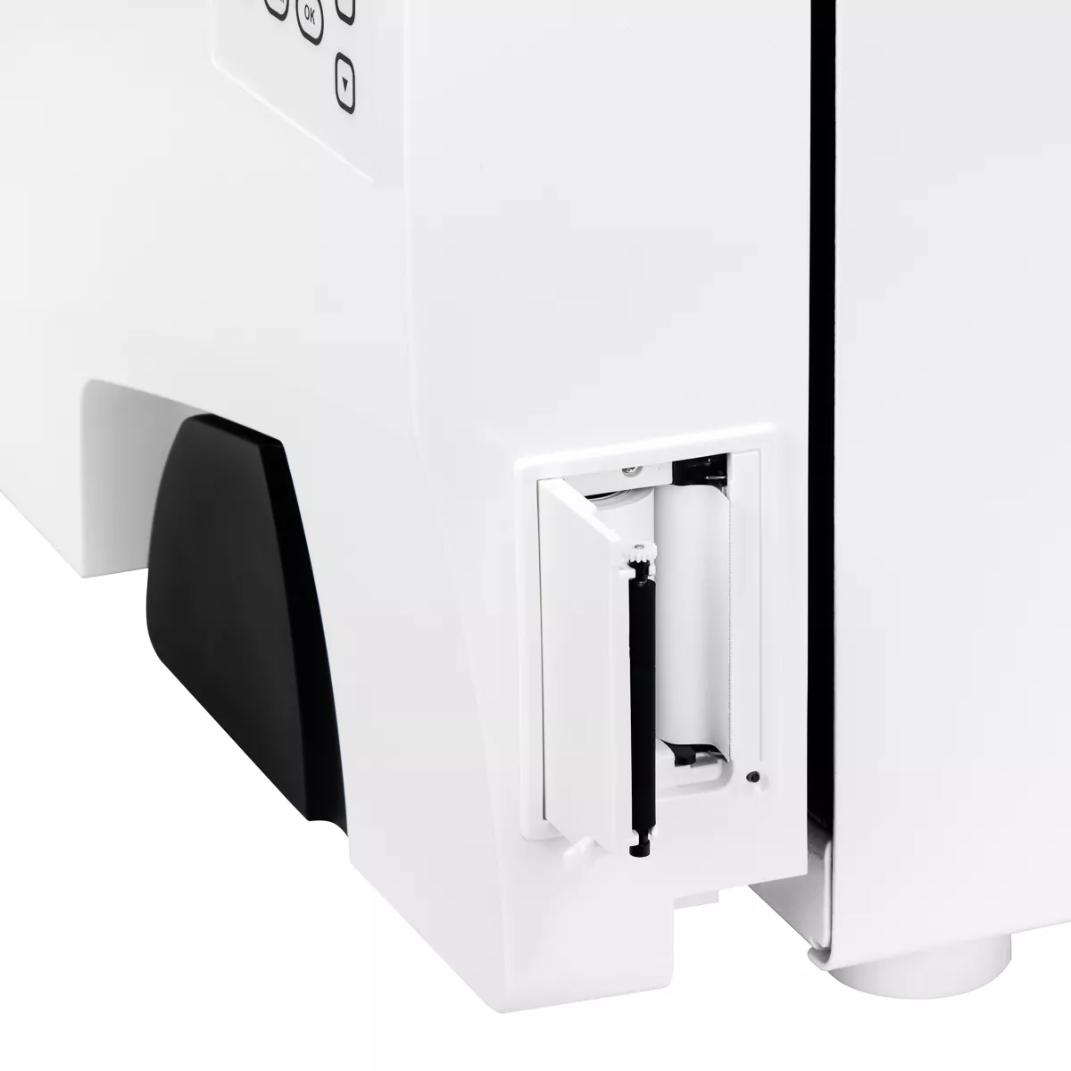 | Wbudowane zbiorniki na czystą i zużytą wodę | Zbiornik na czystą wodę jest przeznaczony na destylowaną lub dejonizowaną wodę, która posłuży do sterylizacji. Obecność zbiornika na zużytą wodę sprawia, że nie potrzebujemy pamiętać o zewnętrznym pojemniku. |