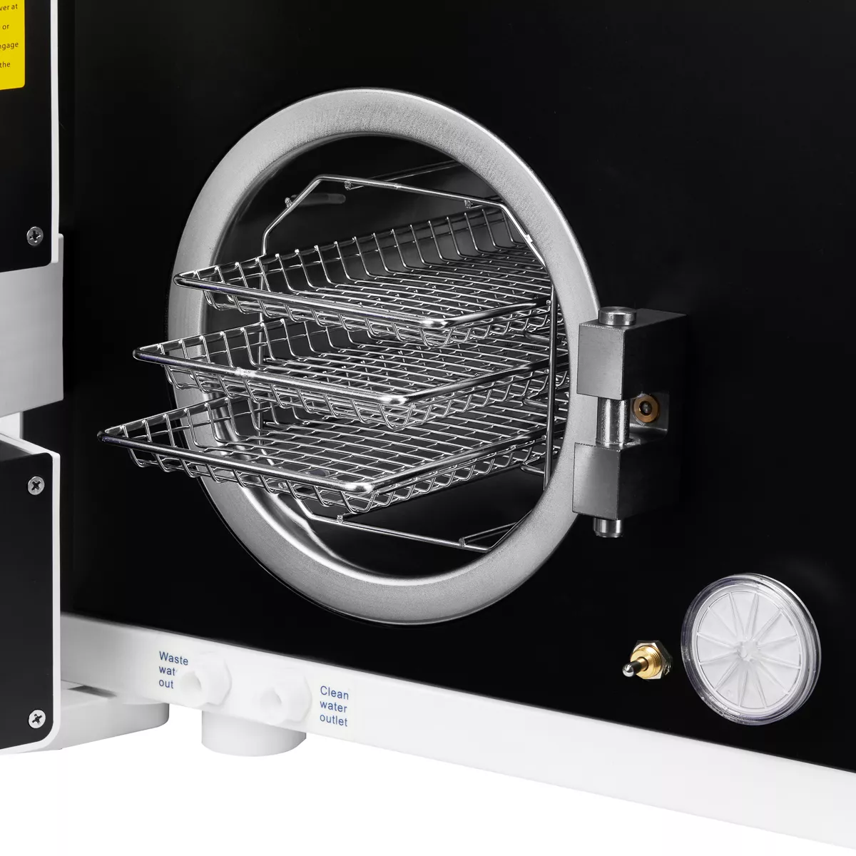 | Pojemność 8 L | 8-litrowy autoklaw doskonale sprawdzi się w np. salonie urody lub tatuażu. Do komory włożymy kratkę z trzema tacami. |