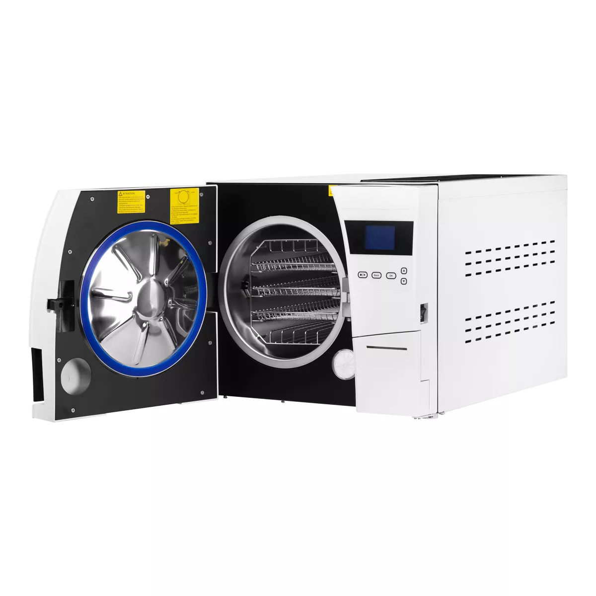 | Funkcja utrzymywania temperatury | Autoklaw będzie rozgrzewać komorę i uruchamiać generator pary celem utrzymywania stałej, ciepłej temperatury (przez max 8 h). Dzięki temu możliwe jest skrócenie czasu realizacji każdego cyklu sterylizacji. |