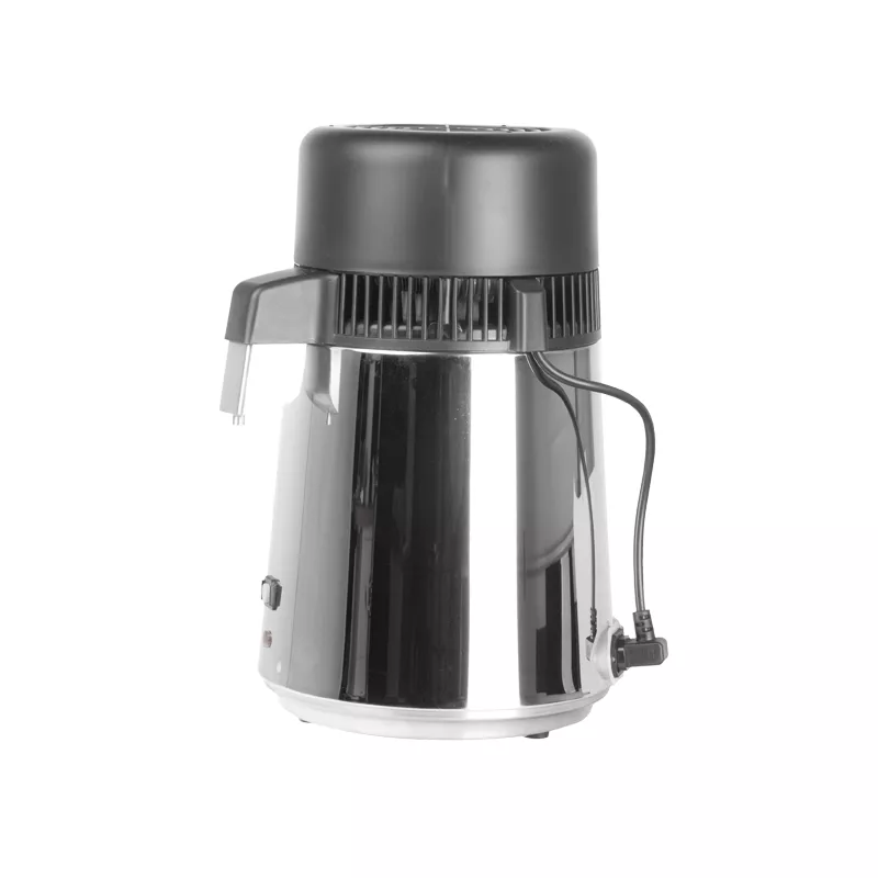 Łatwa w obsłudze destylarka z powietrznym systemem chłodzenia. Nie potrzebuje podłączenia do zewnętrznego źródła wody. Posiada 4 litrowy zbiornik na wodę, a woda destylowana gromadzona jest w szklanym zbiorniku znajdującym się w wyposażeniu urządzenia.