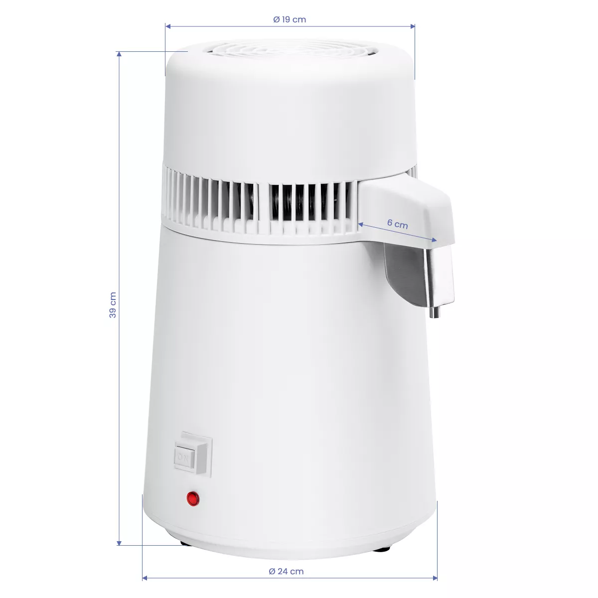 Urządzenie zostało zaprojektowane z myślą o łatwej obsłudze. Wystarczy napełnić pojemnik wodą, zamknąć pokrywę i włączyć urządzenie, a proces destylacji rozpocznie się automatycznie. Wydajność urządzenia wynosi 1 litr na godzinę, co zapewnia szybkie i efektywne oczyszczanie wody. Dodatkowo funkcje automatycznego wyłączania po zakończeniu pracy oraz zabezpieczenie przed przegrzaniem, które aktywuje się przy osiągnięciu temperatury 160ºC, gwarantują bezpieczne użytkowanie.