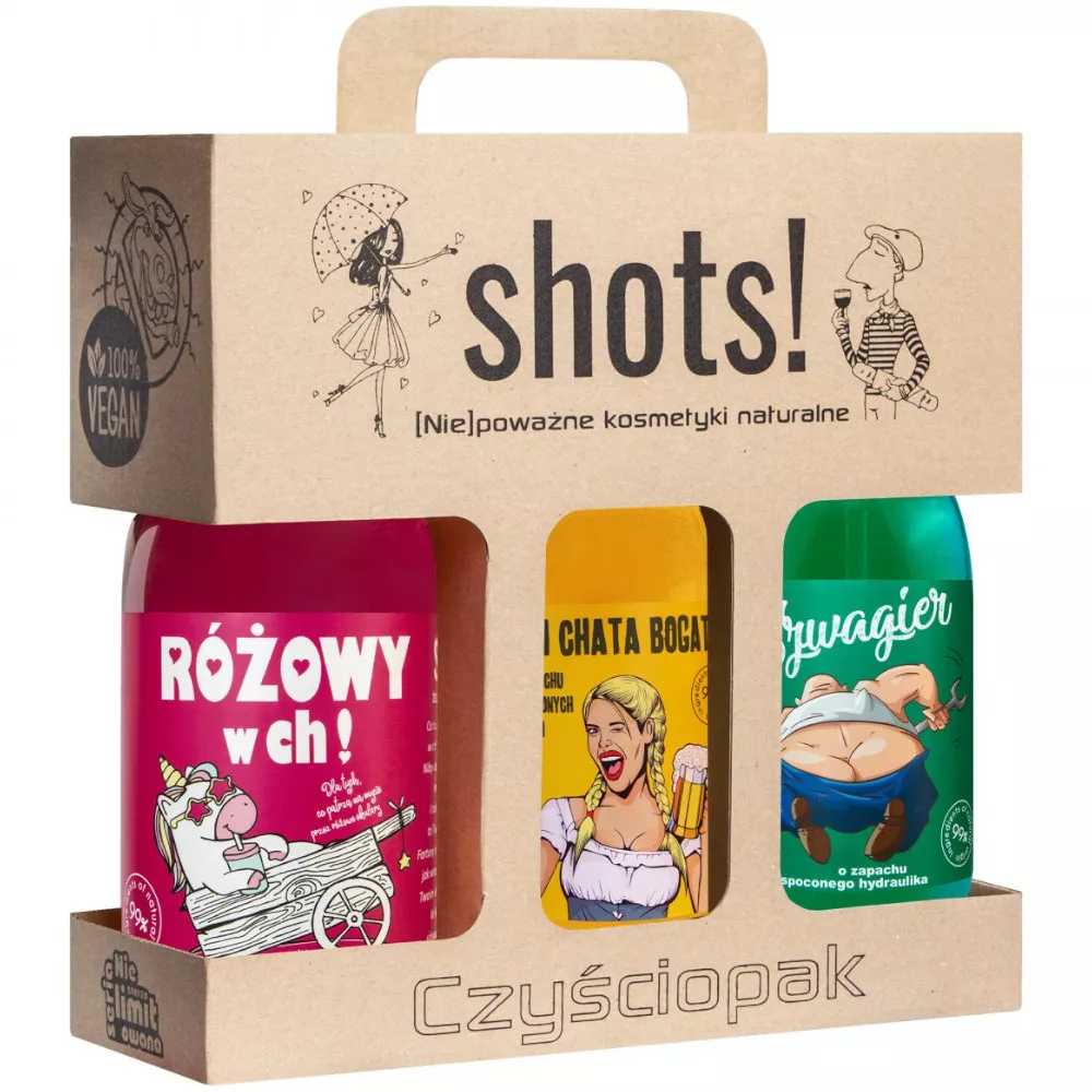Odkryj niezwykłe doznania zapachowe z zestawem LaQ, Shots! Czyściopak do chaty, który zawiera trzy wyjątkowe żele pod prysznic. Każdy z nich to nie tylko wspaniały zapach, ale także skuteczna pielęgnacja skóry. To doskonały wybór na prezent lub jako uzupełnienie Twojej codziennej pielęgnacji.