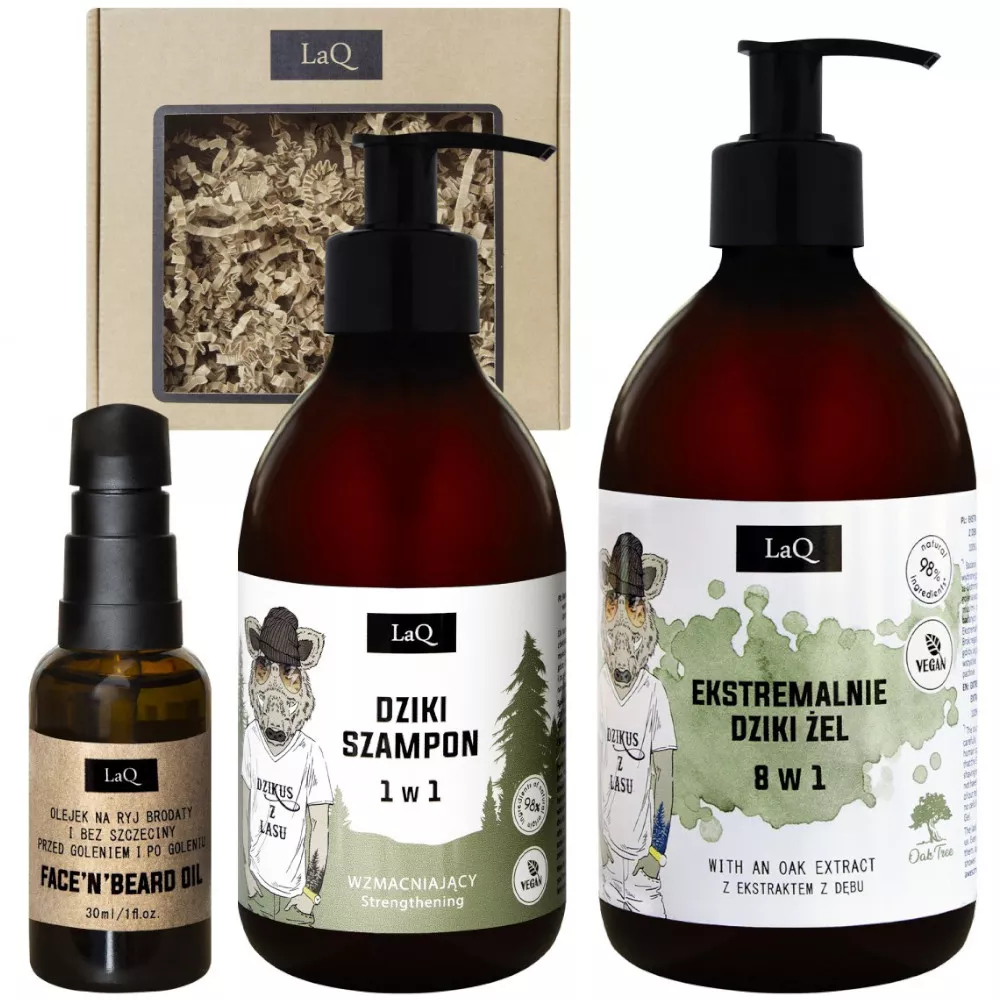 Wybierz LaQ Dzikus z lasu, aby cieszyć się naturą w codziennej pielęgnacji. Ten zestaw to nie tylko sposób na zadbanie o siebie, ale i świetny pomysł na prezent dla każdego mężczyzny. Zamów teraz i przekonaj się o jego wyjątkowych właściwościach!