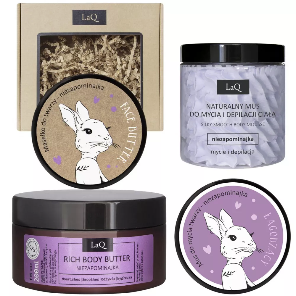 Podaruj sobie lub bliskiej osobie chwilę relaksu i wyjątkowej pielęgnacji z zestawem LaQ "Króliczka Niezapominajka". To doskonały sposób, aby poczuć się wyjątkowo każdego dnia. Nie zwlekaj i już dziś spraw, by Twoja skóra była promienna i pachniała wiosennymi kwiatami!