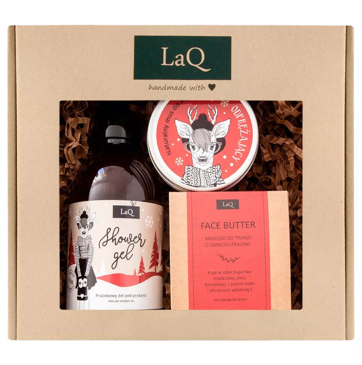 Odkryj magiczny świat czekoladowych słodkości z zestawem prezentowym LaQ Pralinka. To wyjątkowy upominek, który zadowoli każdego miłośnika naturalnych kosmetyków. W zestawie znajdziesz trzy ekologiczne produkty o zniewalającym zapachu, które nie tylko rozpieszczą Twoje zmysły, ale także doskonale zadbają o Twoją skórę.