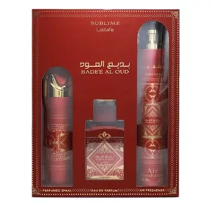 Lattafa Bade'e Al Oud Sublime zestaw woda perfumowana spray 100ml + dezodorant spray 200ml + odświeżacz powietrza 300ml (U)
