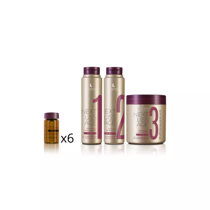 Poznaj profesjonalny zestaw do zabiegu wygładzania włosów Lendan Next Liss Age – innowacyjną kurację, która zapewnia spektakularnie gładkie, lśniące i zdyscyplinowane włosy nawet do 10 tygodni*. To skuteczne rozwiązanie dla osób borykających się z puszeniem, matowością i brakiem elastyczności włosów. Formuła oparta na Kera-Cysteinie oraz kwasie 18-MEA zapewnia intensywną pielęgnację, ochronę i odbudowę struktury włosa, bez użycia formaldehydu.