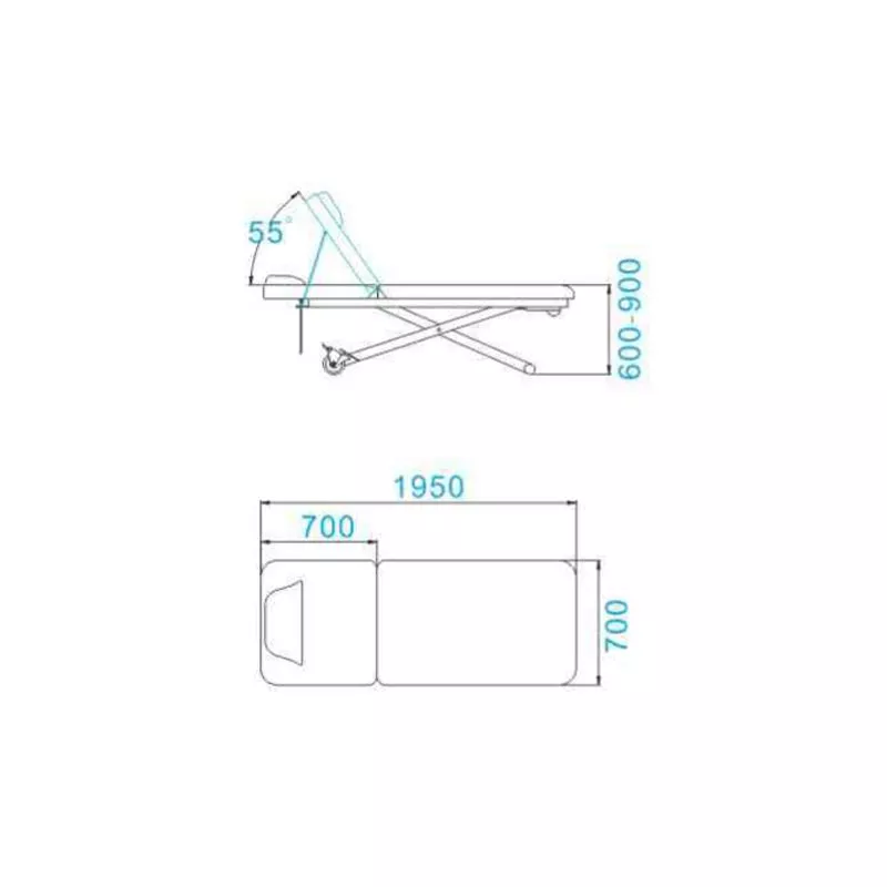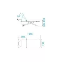 Wymiary: 195 cm długości, 70 cm szerokości, regulowana wysokość od 60 do 90 cm.