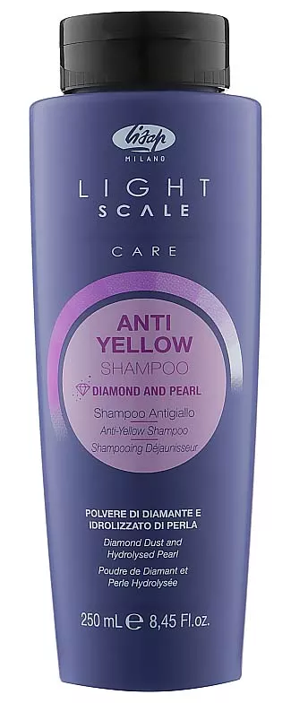 Odkryj profesjonalny szampon Lisap Light Scale Anti-Yellow, który został stworzony z myślą o włosach siwych, blond i rozjaśnianych. Dzięki unikalnej formule z fioletowym pigmentem, pyłem diamentowym i perłowym, ten szampon skutecznie niweluje niepożądane żółte tony, pozostawiając włosy o chłodnym, błyszczącym odcieniu.