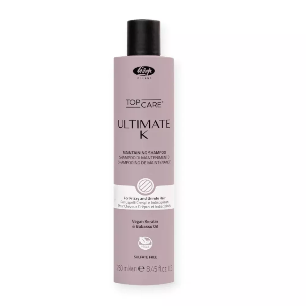 Odkryj moc gładkich, jedwabiście prostych włosów dzięki Lisap Top Care Ultimate-K, szamponowi podtrzymującemu efekt prostowania. Ta innowacyjna formuła, stworzona w laboratoriach Lisap, łączy wegańską keratynę z olejkiem babassu, oferując profesjonalną kurację do włosów, która przynosi efekty jak po wizycie w salonie.
