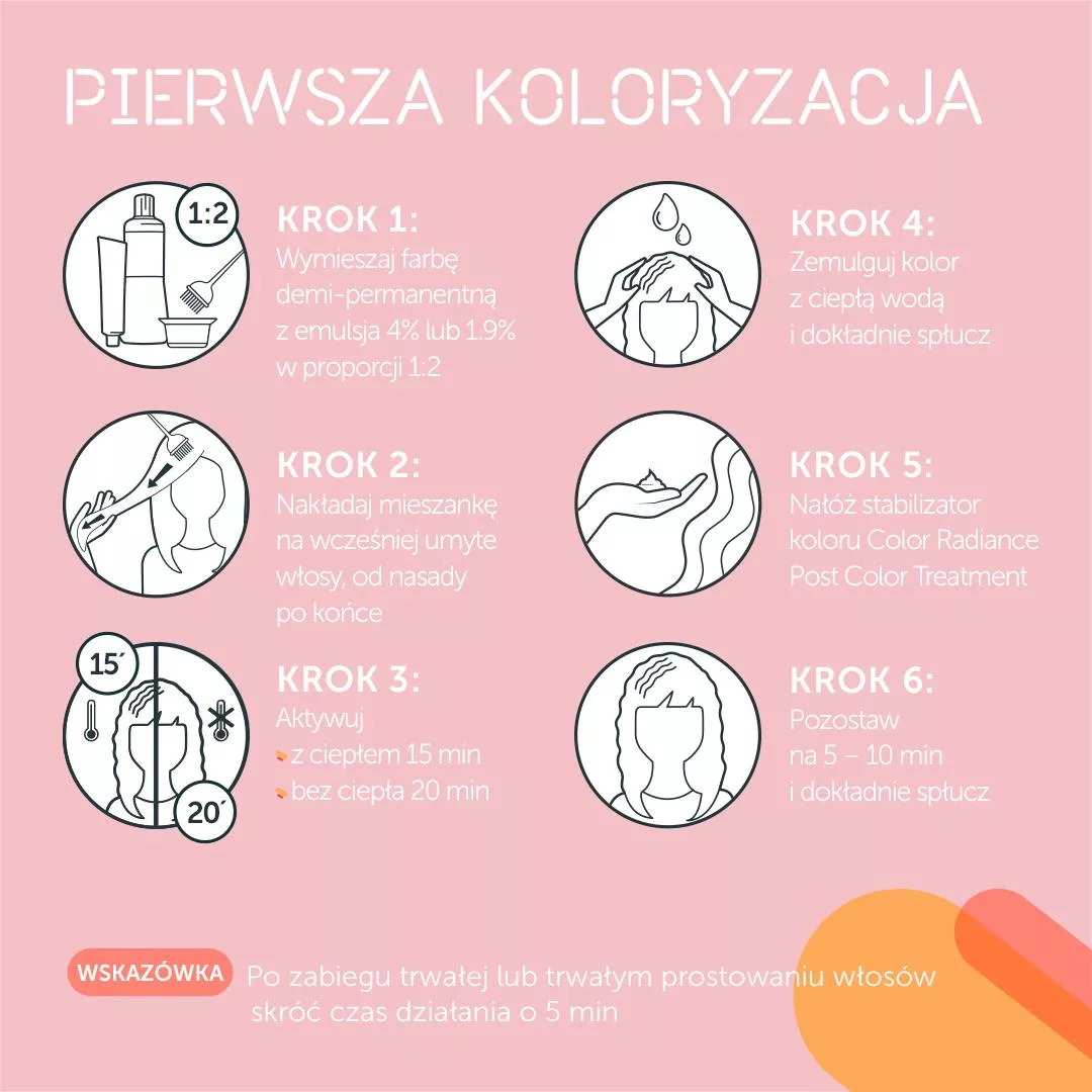 - Po farbowaniu, włosy możesz zemulgować - przeczesz produkt na środki i końce i pozostaw na 5 min (bez użycia ciepła).