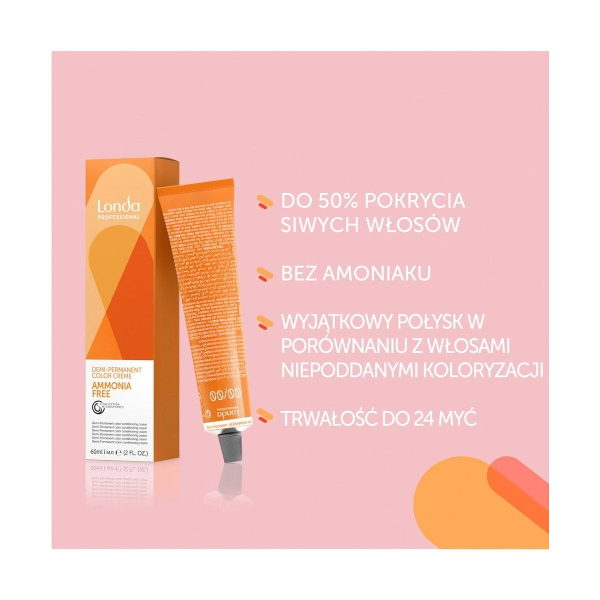 Profesjonalna farba do włosów Londa Color Demi Pernament zawiera nową formułę Vitaflection Microspheres, która sprawia, że włosy mają intensywny i świeży kolor. Świetnie pokrywa siwe włosy. Przyjemny aromat farby świetnie maskuje zapach amoniaku. Vitaflection Microspheres aktywowane są poprzez zmnieszenie produktu do koloryzacji z emulsją utleniającą. Farba posiada kremową emulsję, która bogata jest w woski i lipidy. Pozwala to na aplikację nasyconych kolorem molekuł we wnętrze włosa. Woski i lipidy otulają włosa, odżywiając go i zapewniając mu blask. Do farby należy dokupić lotion.
