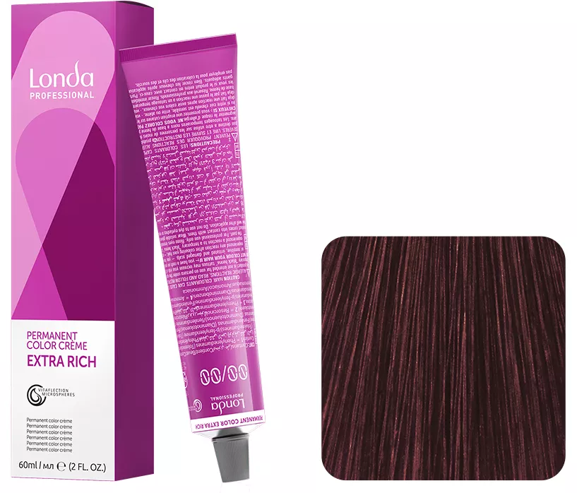 Profesjonalna farba do włosów Londa Color Permanent zawiera nową formułę Vitaflection Microspheres, która sprawia, że włosy mają intensywny i świeży kolor. Świetnie pokrywa siwe włosy. Przyjemny aromat farby świetnie maskuje zapach amoniaku. Vitaflection Microspheres aktywowane są poprzez zmnieszenie produktu do koloryzacji z emulsją utleniającą. Farba posiada kremową emulsję, która bogata jest w woski i lipidy. Pozwala to na aplikację nasyconych kolorem molekuł we wnętrze włosa. Woski i lipidy otulają włosa, odżywiając go i zapewniając mu blask. Do farby należy dokupić lotion.