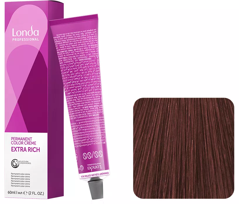 Profesjonalna farba do włosów Londa Color Permanent zawiera nową formułę Vitaflection Microspheres, która sprawia, że włosy mają intensywny i świeży kolor. Świetnie pokrywa siwe włosy. Przyjemny aromat farby świetnie maskuje zapach amoniaku. Vitaflection Microspheres aktywowane są poprzez zmnieszenie produktu do koloryzacji z emulsją utleniającą. Farba posiada kremową emulsję, która bogata jest w woski i lipidy. Pozwala to na aplikację nasyconych kolorem molekuł we wnętrze włosa. Woski i lipidy otulają włosa, odżywiając go i zapewniając mu blask. Do farby należy dokupić lotion.