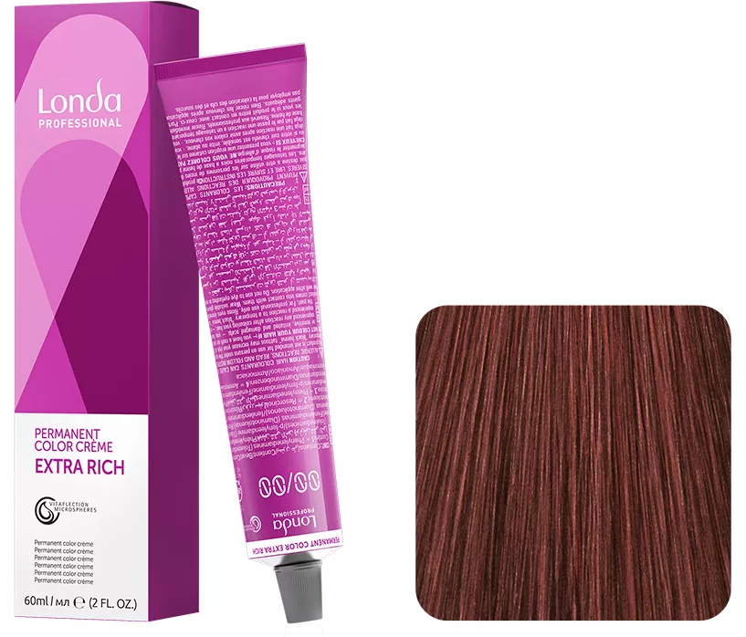 Profesjonalna farba do włosów Londa Color Permanent zawiera nową formułę Vitaflection Microspheres, która sprawia, że włosy mają intensywny i świeży kolor. Świetnie pokrywa siwe włosy. Przyjemny aromat farby świetnie maskuje zapach amoniaku. Vitaflection Microspheres aktywowane są poprzez zmnieszenie produktu do koloryzacji z emulsją utleniającą. Farba posiada kremową emulsję, która bogata jest w woski i lipidy. Pozwala to na aplikację nasyconych kolorem molekuł we wnętrze włosa. Woski i lipidy otulają włosa, odżywiając go i zapewniając mu blask. Do farby należy dokupić lotion.