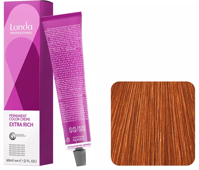 Profesjonalna farba do włosów Londa Color Permanent zawiera nową formułę Vitaflection Microspheres, która sprawia, że włosy mają intensywny i świeży kolor. Świetnie pokrywa siwe włosy. Przyjemny aromat farby świetnie maskuje zapach amoniaku. Vitaflection Microspheres aktywowane są poprzez zmnieszenie produktu do koloryzacji z emulsją utleniającą. Farba posiada kremową emulsję, która bogata jest w woski i lipidy. Pozwala to na aplikację nasyconych kolorem molekuł we wnętrze włosa. Woski i lipidy otulają włosa, odżywiając go i zapewniając mu blask. Do farby należy dokupić lotion.