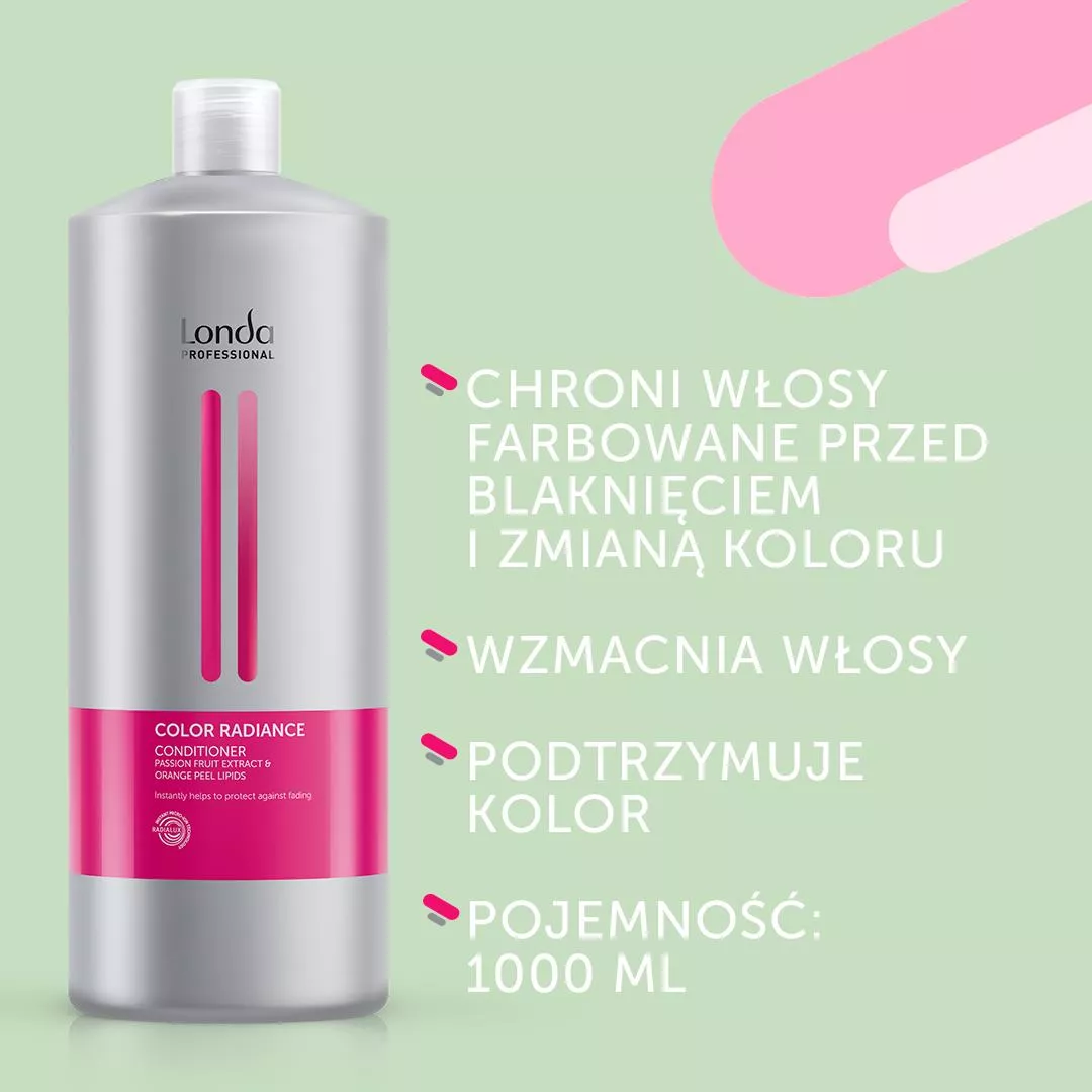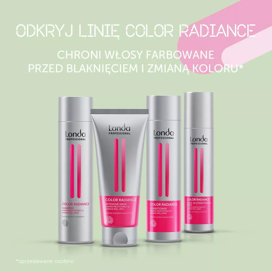 Twoim priorytetem jest zadbana fryzura i ochrona koloru? W pielęgnacji włosów farbowanych nacisk kładziemy głównie na zachowanie świeżości nadanego odcienia i ochronę włosów przed negatywnymi skutkami farbowania. Odżywka zapobiegająca blaknięciu i utracie koloru Londa Professional Color Radiance została stworzona z myślą właśnie o takich potrzebach! Opracowana formuła zawiera inteligentne cząsteczki Radialux Micro-Ions, które wnikają w miejsca najbardziej wymagające odbudowy. Dzięki ich zawartości odżywka po koloryzacji dba zarówno o wewnętrzną strukturę włosa, jak i jego zewnętrzną warstwę. Ogólną poprawę kondycji włosów zapewniają owocowe ekstrakty z marakui i skórki pomarańczy, dzięki którym stają się one naturalnie błyszczące i jedwabiste w dotyku. Dla jeszcze bardziej widocznego rezultatu stosuj odżywkę wraz z innymi produktami z tej serii.