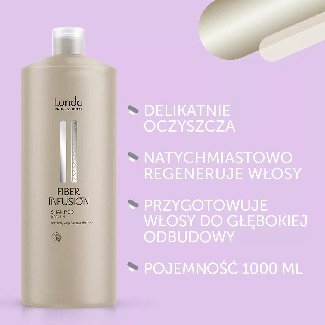 Masz rozdwojone końcówki i zniszczone włosy po rozjaśnianiu lub farbowaniu? Sięgnij po szampon odbudowujący włókna włosów Londa Professional Fiber Infusion z keratyną i emolientami, zapobiegający łamaniu się i przesuszaniu. Łagodnie działający, profesjonalny kosmetyk delikatnie oczyszcza zarówno skórę głowy, jak i włosy, przygotowując je do dalszych zabiegów. Dzięki temu lepiej wchłaniają składniki aktywne zawarte w kosmetykach pielęgnacyjnych, stają się lśniące i lepiej odżywione. Produkt wspiera wzmocnienie włosów każdego rodzaju – nawet wysokoporowatych i uwrażliwionych – zapewniając im natychmiastową regenerację i odbudowę. Dla jeszcze lepszego efektu pielęgnacyjnego stosuj szampon z innymi kosmetykami z serii Fiber Infusion.