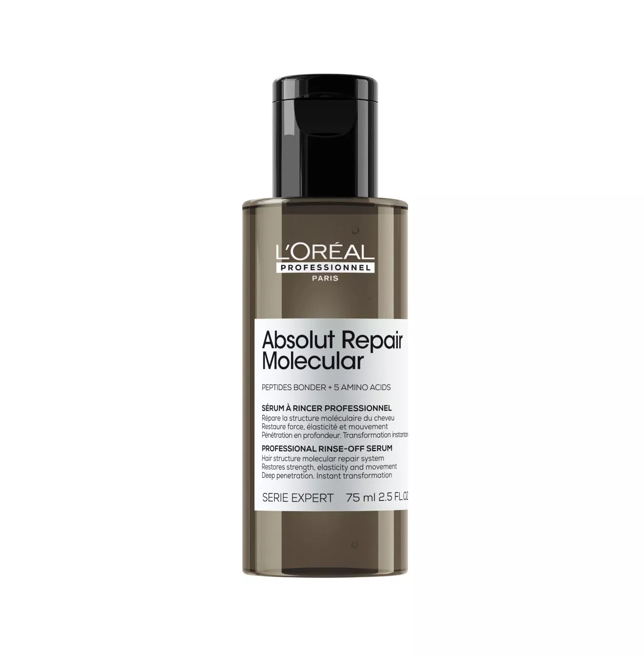 Profesjonalne serum do spłukiwania, skoncentrowane z 2% wiązaniami peptydowymi + 5 aminokwasami w celu naprawy struktury molekularnej włosów. To więcej niż naprawa powierzchni, wzmacnia wnętrze włosa na poziomie molekularnym. Zainspirowany ultra silnymi serum do pielęgnacji skóry, głęboko wnika we włókno, aby odbudować siłę włosów na poziomie molekularnym. Elastyczność i ruch zostają przywrócone. Włosy natychmiast ulegają widocznej przemianie: ich połysk i gładkość ulegają znacznej poprawie.