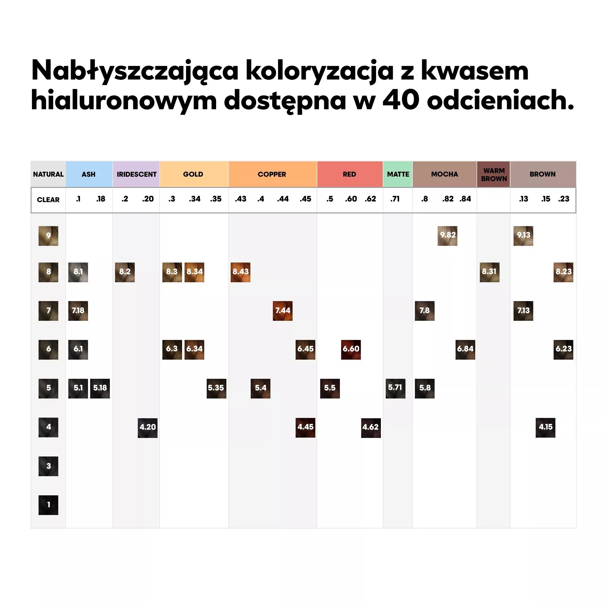 ** Maksymalny % naturalności we wszystkich odcieniach gamy, co najmniej 84%