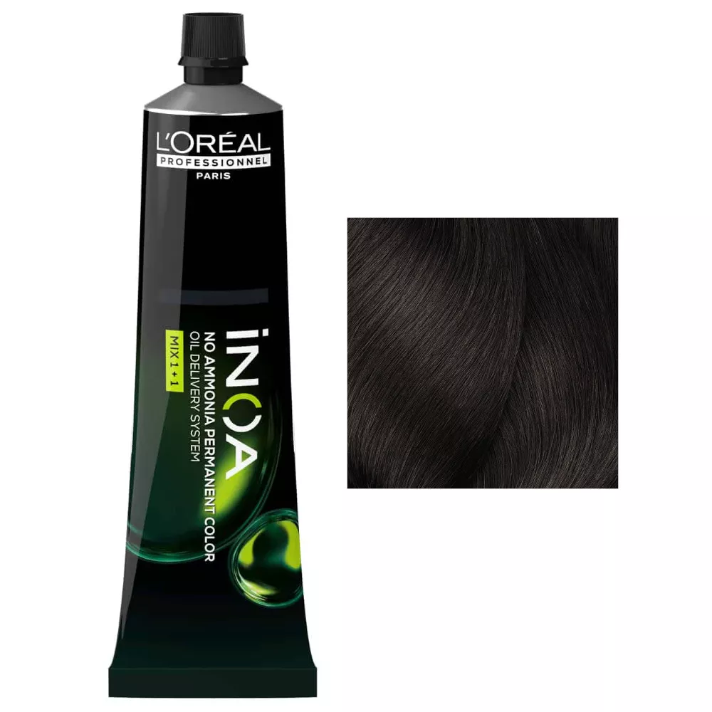 Loreal Inoa, farba do włosów w kremie bez amoniaku, 4.15, 60g