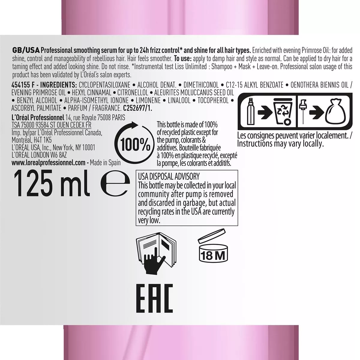 Listy składników dla produktów marki Loreal są regularnie aktualizowane. Zapoznaj się z listą składników na opakowaniu produktu, gdzie zawsze znajduje się najbardziej aktualna lista składników, aby upewnić się, że jest ona dla Ciebie odpowiednia. (W przypadku produktów typu refill napełnianych w sklepie, najbardziej aktualną listę składników należy uzyskać w punkcie sprzedaży po uzupełnieniu w nim produktu).