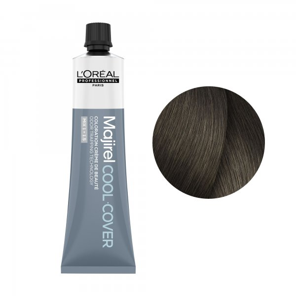 Majirel Cool Cover to trwała koloryzacja, która zapewnia chłodny efekt dzięki silnej neutralizacji i nawet do 100% pokrycia siwych włosów. Rozjaśnia włosy o 2–3 tony, pozwalając uzyskać intensywne, trwałe i chłodne odcienie – od głębokich brązów po świetliste blondy. Odcienie Cool Cover skutecznie neutralizują niepożądane ciepłe tony na każdym rodzaju włosów, nawet na najciemniejszych bazach, dzięki wysokiemu stężeniu chłodnych pigmentów.