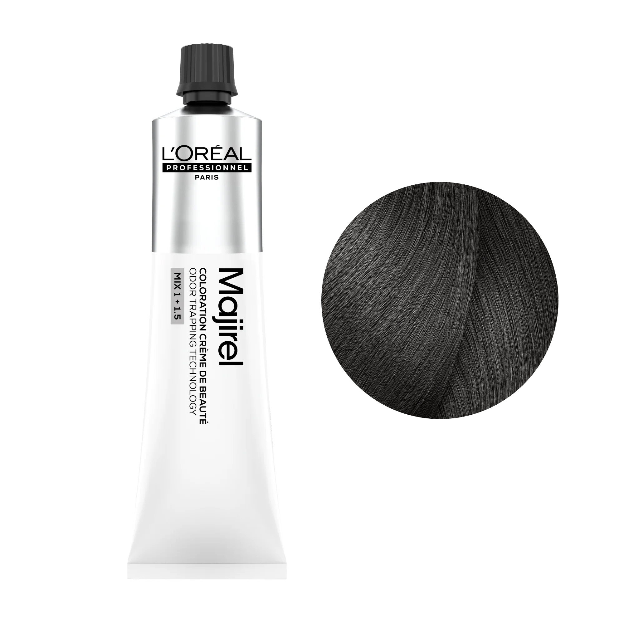 Używaj wyłącznie z oksydantami L'Oréal Professionnel. Przy każdej aplikacji wymieszaj krem koloryzujący Majirel z oksydantem w proporcji 1+1.5. Mieszaj przy pomocy mieszadła lub shakera do uzyskania jednolitej konsystencji. Czas trzymania: 35 minut. Uwaga: czas trzymania liczony jest od zakończenia aplikacji mieszanki na odrost. Po upływie czasu trzymania, delikatnie emulguj włosy przez kilka minut. Dokładnie spłucz włosy, aż woda będzie czysta. Zakończ koloryzację szamponem ochronnym Metal Detox.