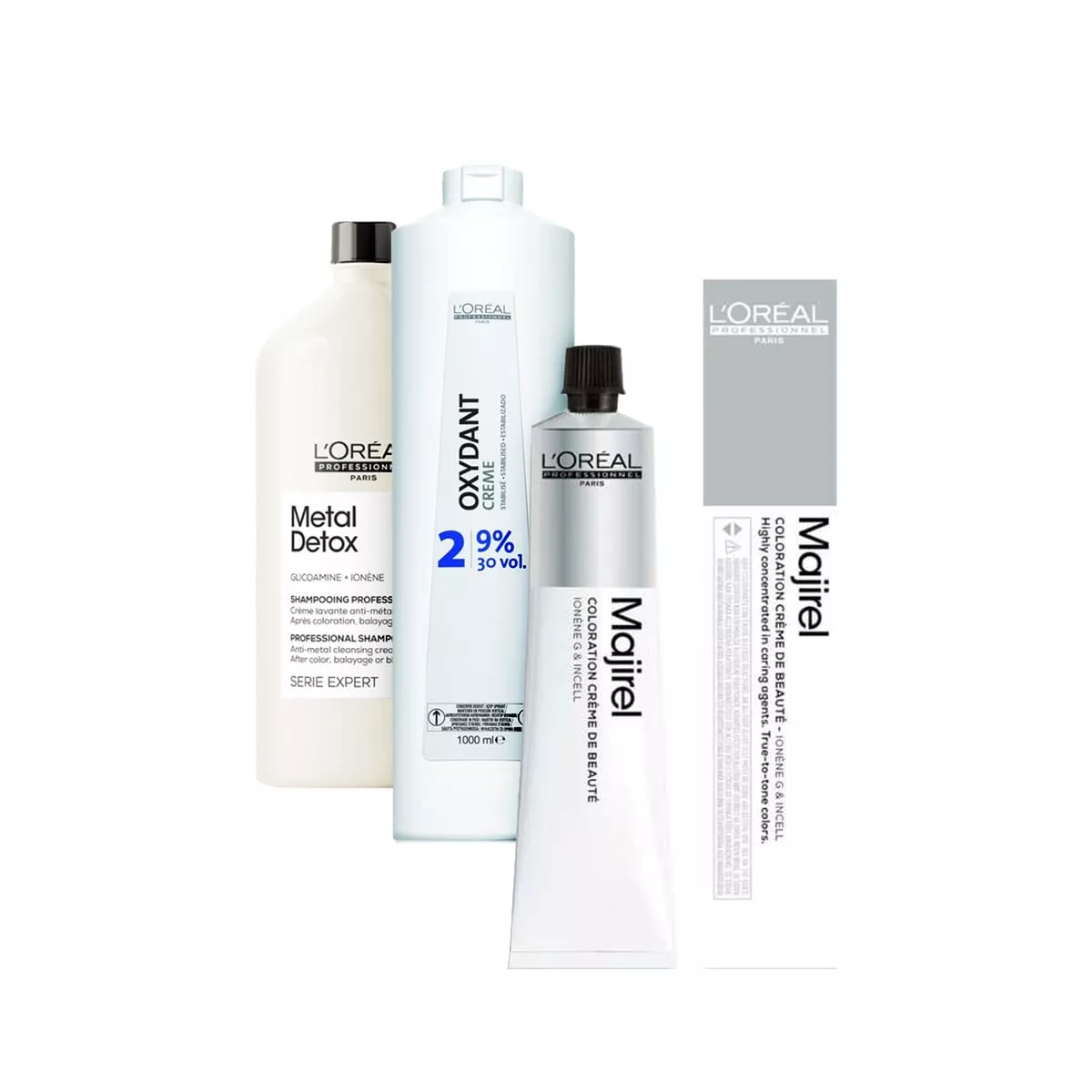 Gotowy zestaw do koloryzacji profesjonalną farbą do włosów Loreal Majirel to wygodna i ekonomiczna propozycja na jednorazowe farbowanie. W skład zestawu wchodzą wszystkie niezbędne i potrzedne składniki: