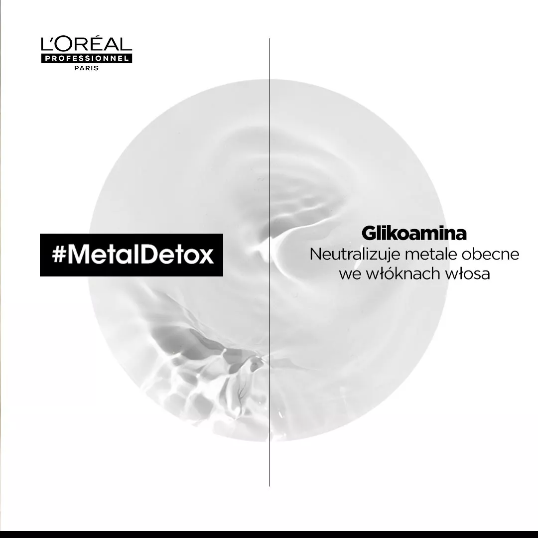 Czy wiesz, że podczas mycia może dojść do wnikania metali ciężkich z wody do włókien włosów? To z kolei skutkuje łamliwością włosów, osłabieniem i może też być jedną z przyczyn nierównego efektu podczas koloryzacji. Problem ten rozwiązuje maska do włosów Loreal Metal Detox. Kosmetyk zadba o włosy po koloryzacji, które mają większą skłonności do wchłaniania metali, mogą blaknąć, kruszyć się czy żółknąć. W składzie produktu znajduje się malutka cząsteczka - glikoamina. Wnika ona we włókna włosów i neutralizuje skutecznie obecne w nich metale. Stosowanie maski Metal Detox zmniejsza ryzyko zniszczenia włosów, zapewnia lepsze efekty koloryzacji i utrzymanie pięknego koloru na dłużej. W efekcie włosy są mięsiste, pełne blasku i zdrowe.